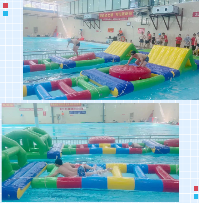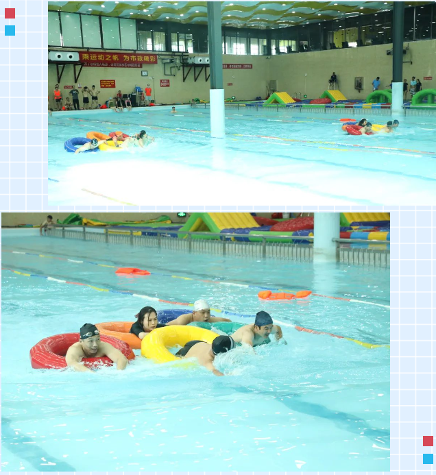 比賽項(xiàng)目分為“風(fēng)雨同舟”、“爭分奪秒”、“奧運(yùn)五環(huán)”、“勇往直前”四個(gè)環(huán)節(jié),選手們充分利用水上道具,你追我趕、頑強(qiáng)拼搏,將比賽的氣氛推向高潮,歡聲笑語不斷、氣氛熱鬧非凡。